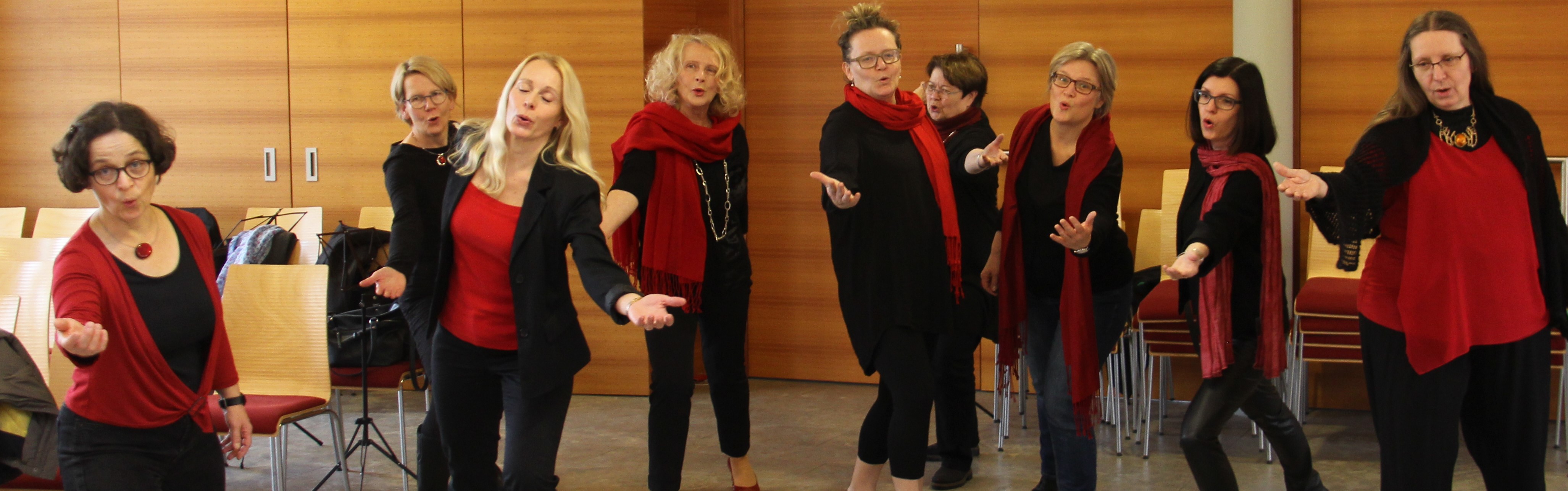 Im Ensemble Femmes Vocales widmen wir uns anspruchsvollen geistlichen Werken, aber auch weltliche Stücke kommen bei uns nicht zu kurz. In den letzten Jahren haben wir ein besonderes Programm rund um die Rose einstudiert und an mehreren Orten, wie Goldkronach, Bayreuth undKulmbach aufgeführt: Stücke wie The Rose (Bette Midler), Heidenröslein (F. Schubert), Kiss from a Rose (Seal/Bearbeitung J. Bremer) oder Wilde Rose (A.Dvorak) wurden abwechselnd mit Gedichten und Texten zur Rose vorgetragen. Unterstützt wurden wir dabei von Wolfram Ster, Mitglied der Studiobühne Bayreuth. Ein Höhepunkt war aber sicher das Rosenkonzert in Piskowitz in der Nähe von Meißen, wo wir im Sommer 2018 beim Tag der offenen Gärten in Eva-Christina Stengers prächtigem Garten zu Gast waren – eine schönere Umgebung für ein Rosenprogramm kann man sich kaum vorstellen!